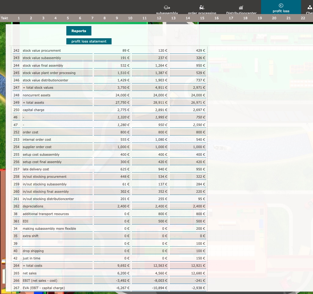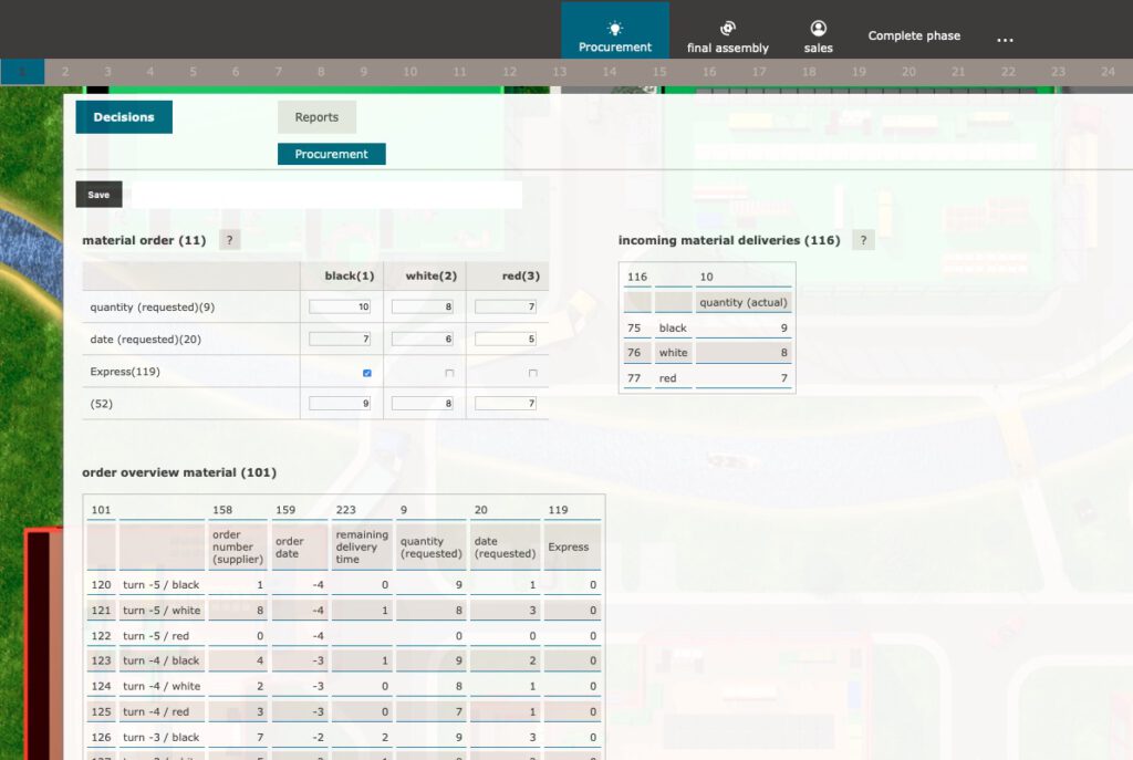 In the team, the players act in the roles of purchasing, production,